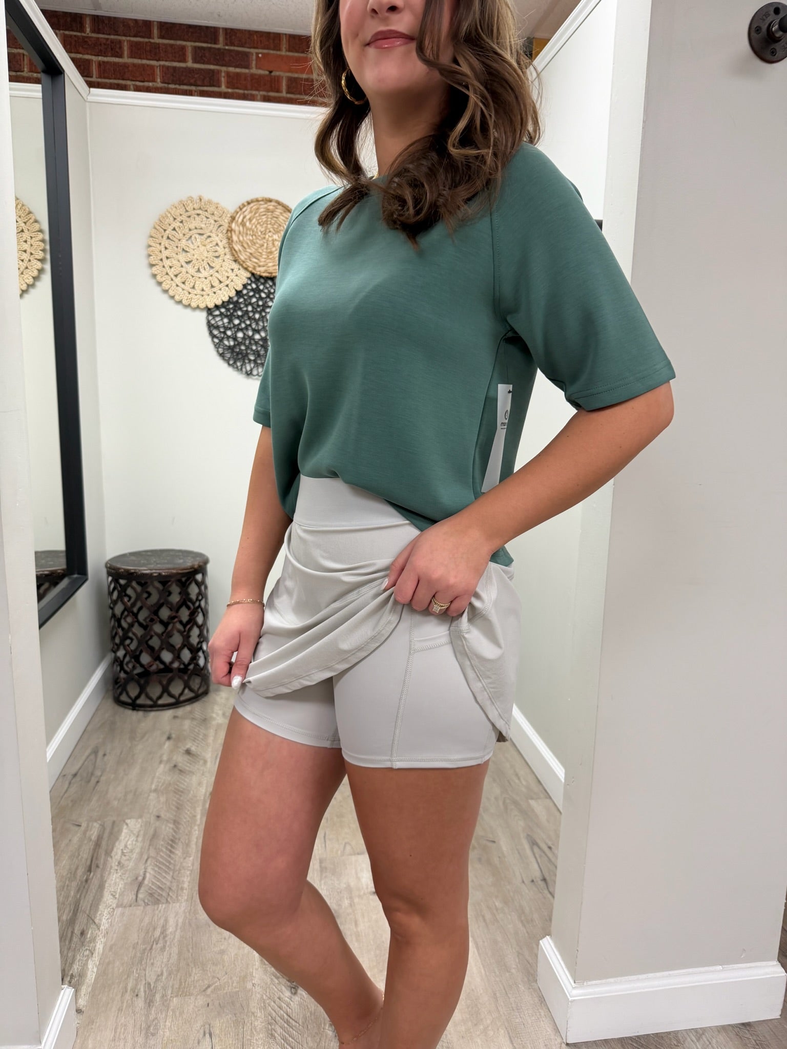 This skort is so functional and chic you'll want to wear it on and off the court. It has a seam that swoops all the way around and built-in shorts with side pockets for those tennis balls or your phone.