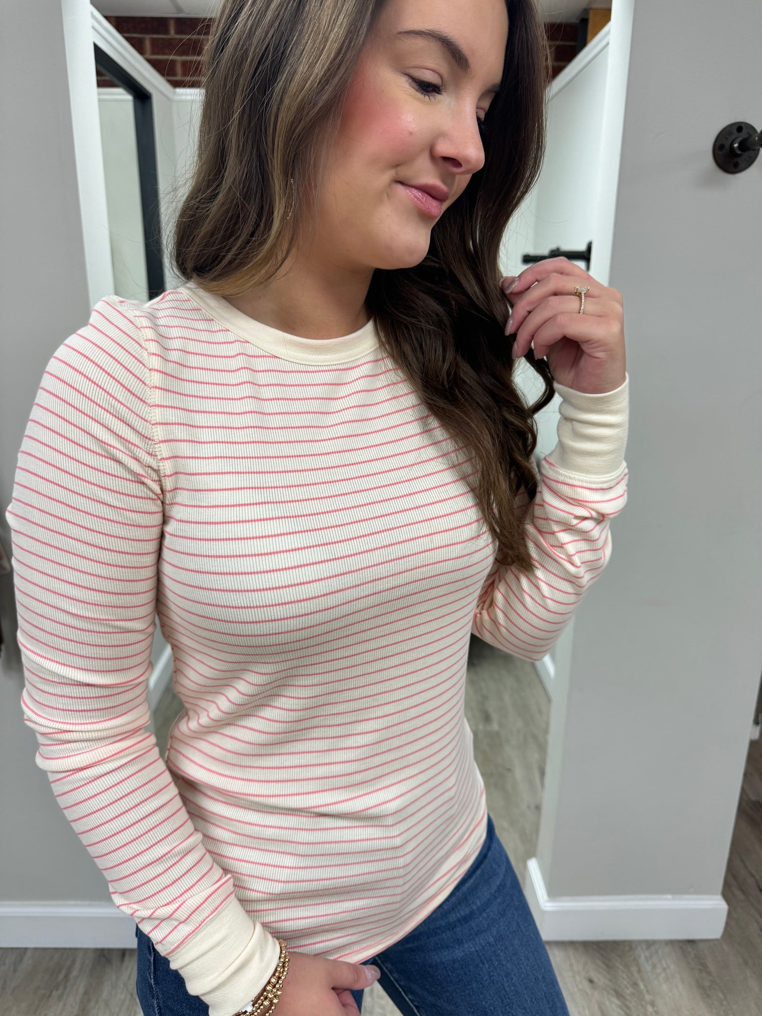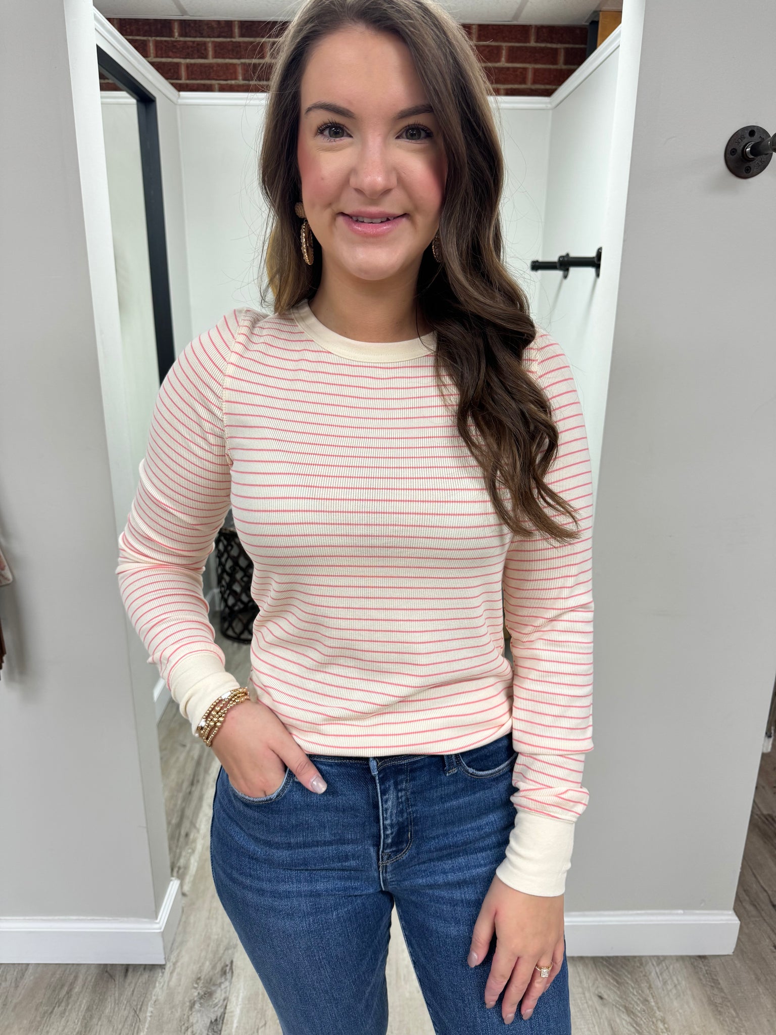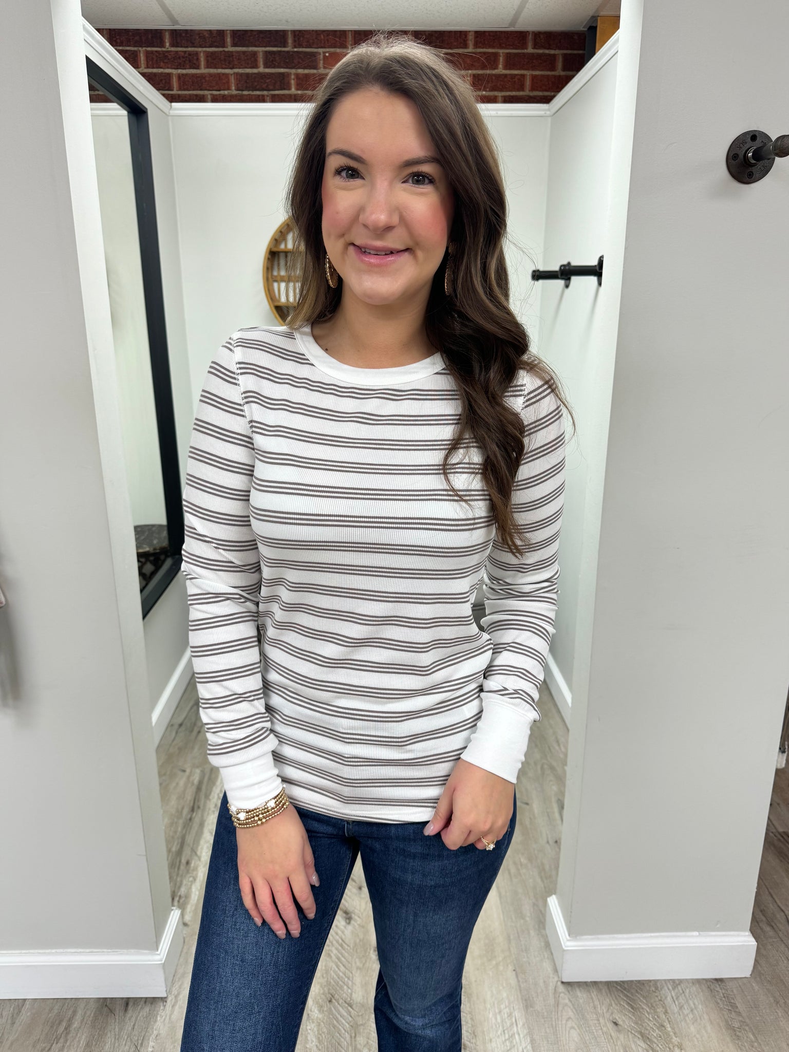 The Stacy Top features 4 stylish designs: plain mocha, mocha and cream stripes, cream and purple stripes, and green and cream stripes. These soft, lightweight, long sleeve shirts are versatile and perfect for layering or wearing alone. Bring comfort and style to your wardrobe with the Stacy top.