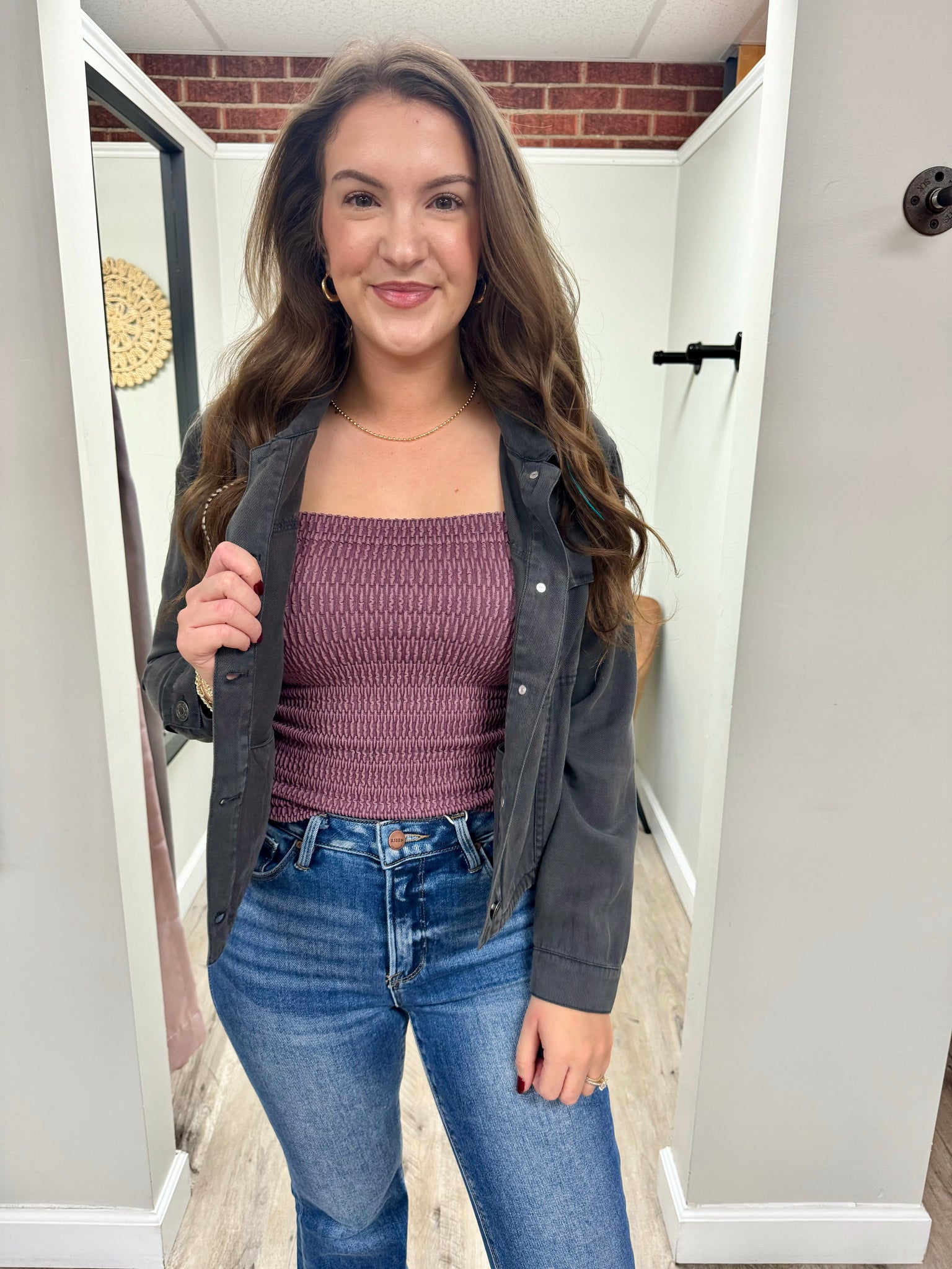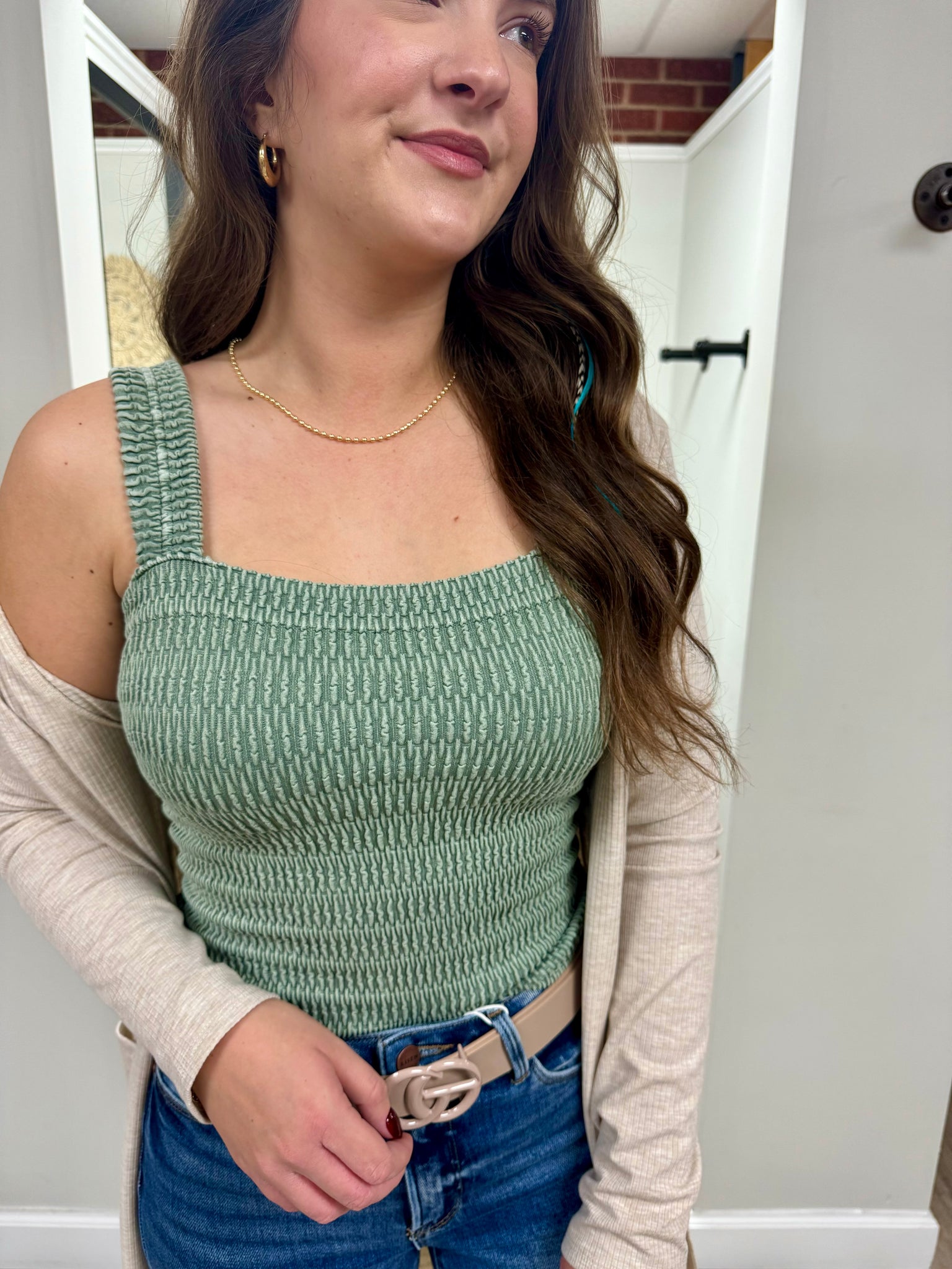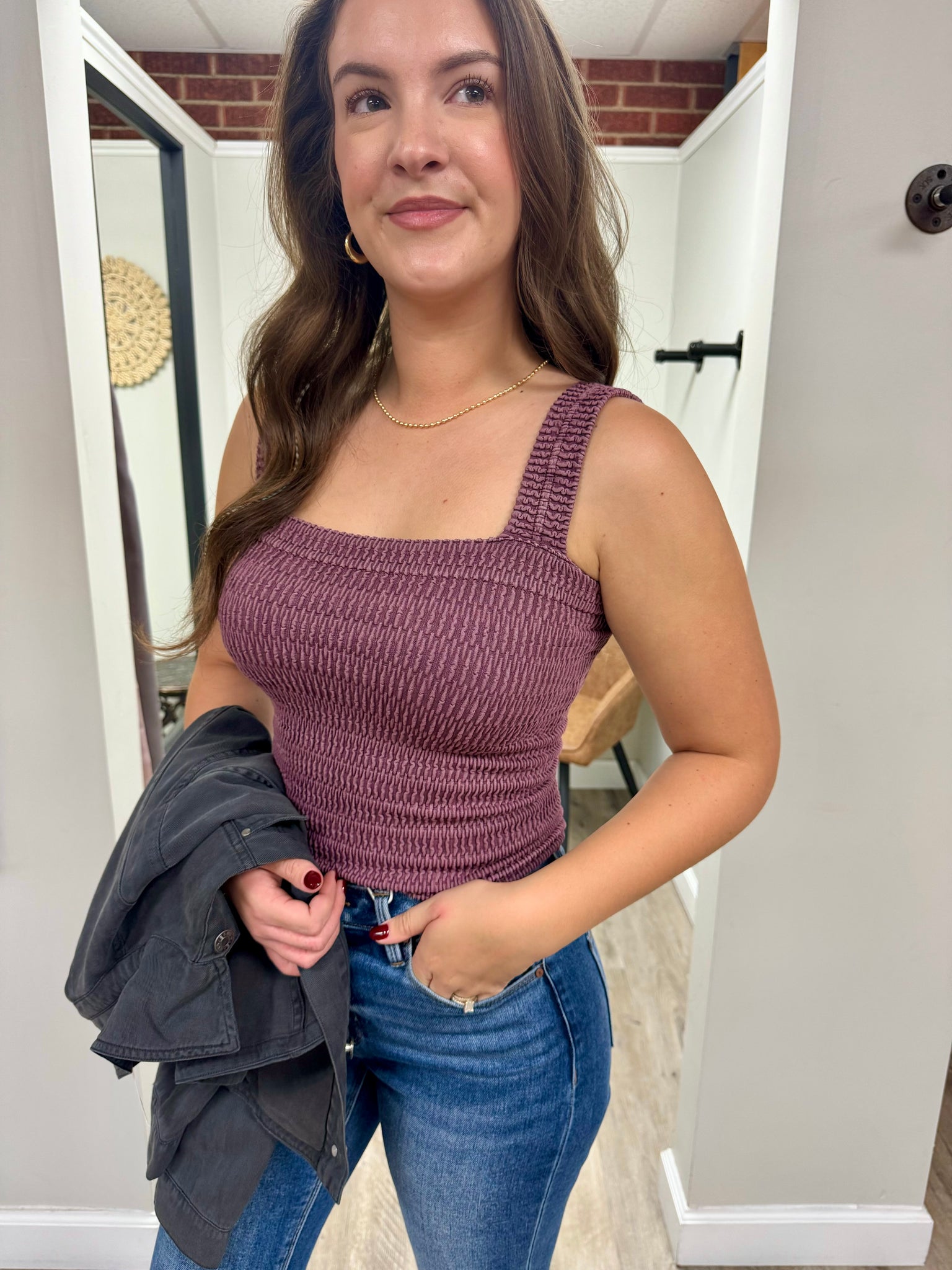 SEAMLESS WINKLE STONE WASHED TANK TOP TOTAL BODY LENGTH: 14", TOP WIDTH: 22" approx. - MEASURED FROM S/M